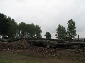 Wiosną 1943 roku siłami więźniów wybudowano potężne krematoria II i III, których ruiny widnieją po obu stronach Pomnika. Każde z nich miało po 5 piecy trzyretortowych w których można było spalić ponad 2000 zwłok w ciągu doby. Znajdowały się w nich podziemne rozbieralnie i komory gazowe, które mogły jednorazowo pomieścić do 3000 ludzi. Zwłoki przewożono windą do pieców znajdujących się wyżej. Do zabijania używano gazu - cyklonu B - czyRuiny Krematoriumli silnie trującego cyjanowodoru. Śmierć gazowanych następowała w ogromnych męczarniach po ok. 10 minutach. Oprócz krematoriów II i III, których urządzenia Niemcy przed wkroczeniem Armii Czerwonej zdemontowali i wywieźli do Rzeszy, istniały jeszcze krematoria IV i V. Przed ruinami krematorium IV do dziś zachował się stawek do którego zsypywano prochy spalonych zwłok.