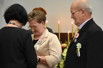 Z tym większym szacunkiem i podziwem patrzę dziś na zgromadzonych tu jubilatów. Państwa miłość i zaangażowanie w budowanie wspólnej rzeczywistości świadczą o tym, że mimo wszystko – mimo kierunków, jakie wyznacza współczesny świat – warto dbać o to, co łączy nas z najbliższymi.