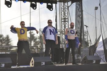 Publiczność czekała już na gwiazdy i rozrywkową część Święta. W pierwszym skeczu Kabaretu DNO wystąpił ochotnik-amator, który zagrał swoją rolę tak, jakby pół życia spędził na scenicznych deskach. Po śmieszno-strasznych "numerach" z kostuchą i kucharzem w rolach głównych kabareciarze obśmiali zawziętych sąsiadów w blokowisku, amantów o wątpliwej aparycji, amatorów tanich używek i – wystawiając na próbę poczucie humoru części widowni – talenty zespołów śpiewaczych. DNO ubarwiło swój występ oryginalnymi rekwizytami i kostiumami, a także pomysłowymi montażami polskich i zagranicznych przebojów. Chwilami było dosadnie i rubasznie, ale nieustająco – wesoło.