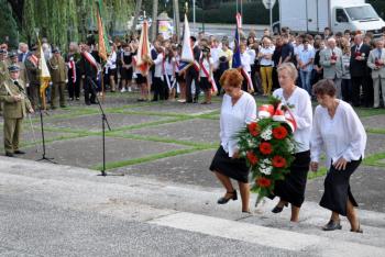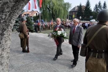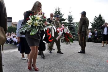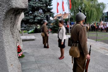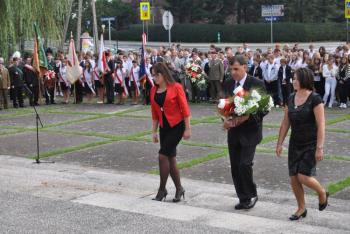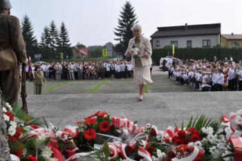– Szanowni Państwo! Zebraliśmy się tutaj w celu upamiętnienia 73. rocznicy Bitwy pod Rajskiem. Bitwy, w której polegli nasi rodacy: patrioci, żołnierze, mieszkańcy tych ziem. Ten pomnik, przed którym stoimy to historia II wojny światowej. Odległa w czasie, ale jednak wciąż żywa. Żywa w pamięci osób, którzy byli świadkami tych strasznych wydarzeń. Wydarzenia te odcisnęły piętno na narodzie polskim, na mieszkańcach naszej ziemi - powiedziała Wójt Gminy Oświęcim Małgorzata Grzywa. – To w tym miejscu ginęli ci, którzy walczyli o wolność w imię miłości do Ojczyzny. Naszą powinnością jest, aby pamięć o tych wydarzeniach pozostała żywa. W ten symboliczny sposób możemy oddać hołd i szacunek ofiarom Boju pod Rajskiem. Żołnierzom, którzy w obronie swojej Ojczyzny złożyli największą ofiarę – własne życie.