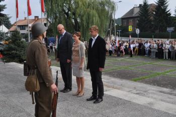 W uroczystościach prócz dzieci i młodzieży z gminnych szkół i przedszkoli, uczestniczyli przedstawiciele władz naszej gminy na czele z wójt Małgorzatą Grzywą i przewodniczącym Rady Gminy Piotrem Śreniawski, proboszcz miejscowej parafii, ks. Stanisław Koziana, reprezentanci sołtysów na czele z Władysławem Zalińskim, prezesem Powiatowego i Gminnego Koła, przedstawiciele organizacji kombatanckich, KGW, OSP, LKS, Kołek Rolniczych, Bractwa św. Barbary, delegacja Rady Miasta Kęty z przewodniczącym Eugeniuszem Zawadzkim, młodzież i nauczyciele z Zespołu Szkół w Skidziniu.