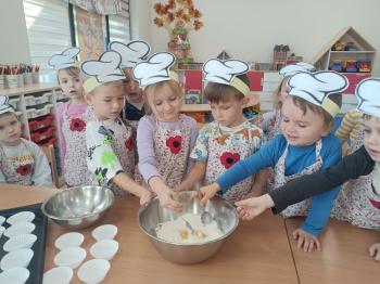 Dziewczynki grupy Rybki obchodziły swoje święto "Dzień dziewczyny". W tym dniu chłopcy jak prawdziwi dżentelmeni złożyli swoim koleżankom życzenia oraz wręczyli upominki. Dzieciom towarzyszyła muzyka i zabawy. Dodatkowo cała grupa piekła pyszne babeczki dekorując kolorowymi posypkami. Serdecznie dziękujemy rodzicom za przygotowanie upominków.