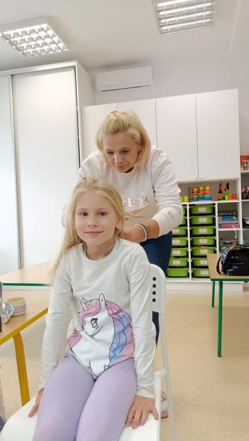 Następnie wykonała piękne fryzury chętnym dzieciom. Po tak wspaniałym spotkaniu każdy na pewno z chęcią będzie chodził do fryzjera.