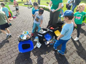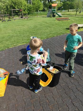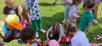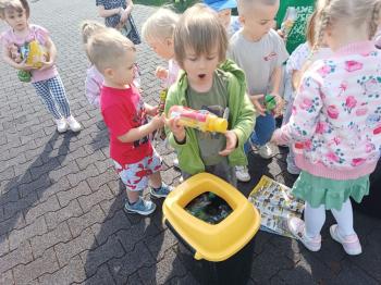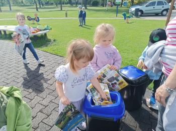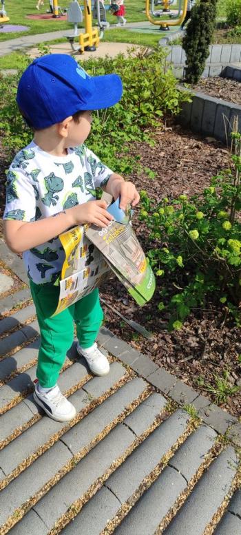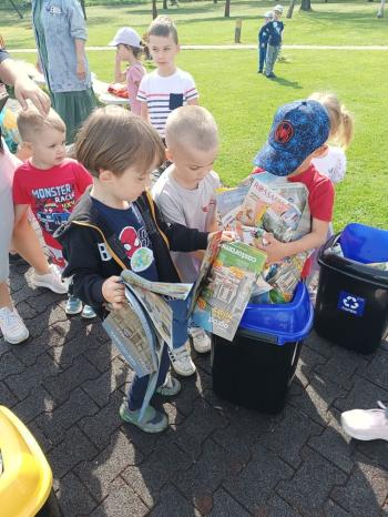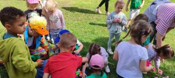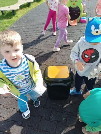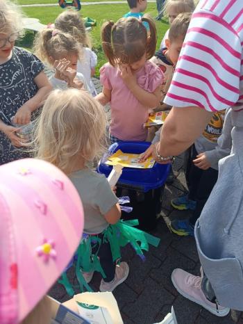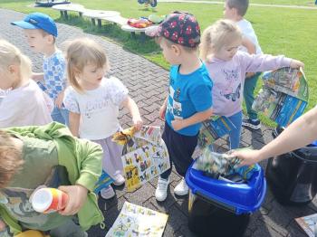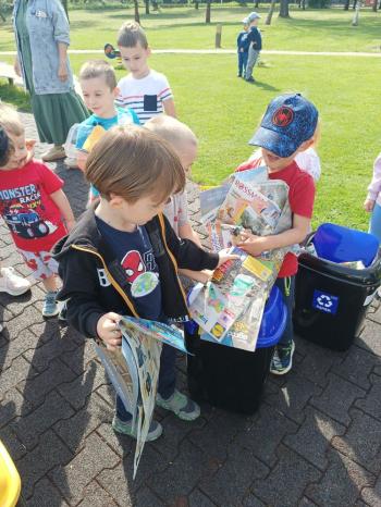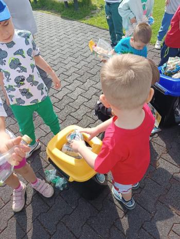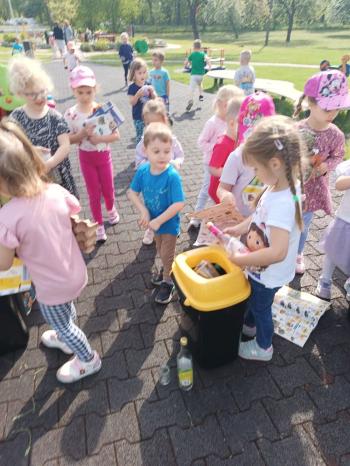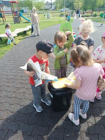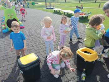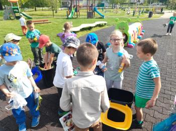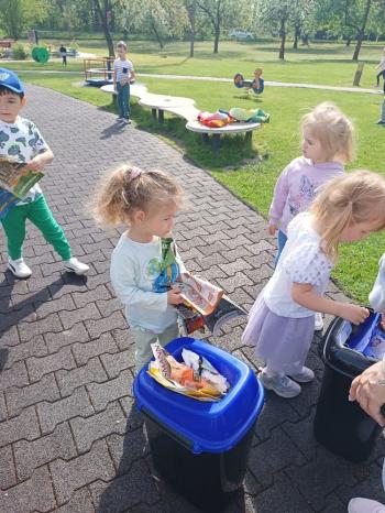 24 kwietnia nasze przedszkole wzięło aktywny udział w obchodach Światowego Dnia Ziemi.Tego dnia dzieci z wszystkich grup przedszkolnych zaangażowały się w działania na rzecz ochrony środowiska. Wyposażone w rękawiczki i worki na śmieci, z wielkim entuzjazmem ruszyły w teren, by posprzątać najbliższą okolicę przedszkola. Celem wydarzenia było nie tylko zadbanie o czystość naszej przestrzeni, ale przede wszystkim kształtowanie postaw proekologicznych już od najmłodszych lat. Dzieci uczyły się, jak ważne jest dbanie o przyrodę, segregowanie odpadów i codzienne działania, które pomagają chronić naszą planetę. W tym wyjątkowym dniu odbył się również kolorowy pokaz mody ekologicznej, podczas którego dzieci zaprezentowały stroje wykonane z materiałów z recyklingu – wykazując się przy tym ogromną kreatywnością i świadomością ekologiczną. Nie zabrakło także radości i śmiechu – przedszkolaki wzięły udział w zabawach muzyczno-ruchowych z Panem Humorkiem, który zadbał o dobrą atmosferę, ucząc przy okazji, jak dbać o nasz wspólny dom – Ziemię.