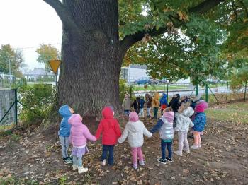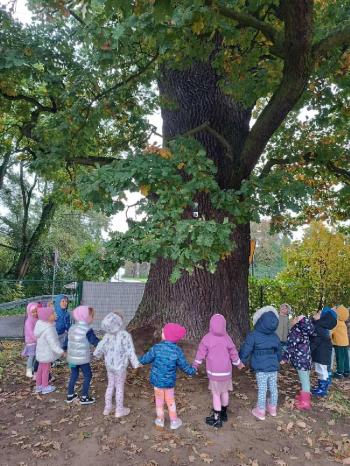 .Następnie dzieci udały się do ogrodu przedszkolnego, gdzie wspólnie zatańczyli i zaśpiewali dla naszych drzew.