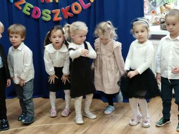 i wzruszeń! Dzieci zaprezentowały piękny program artystyczny – śpiewały, recytowały wierszyki i tańczyły, dziękując w ten sposób wszystkim nauczycielom i pracownikom przedszkola za ich codzienną pracę, troskę