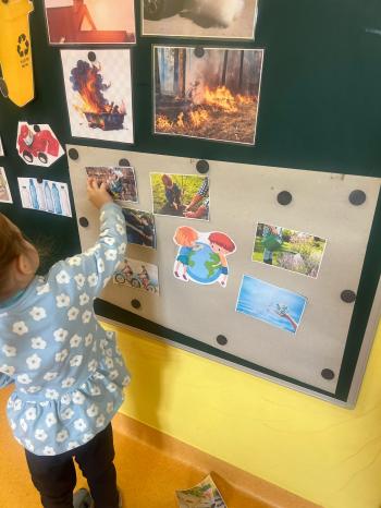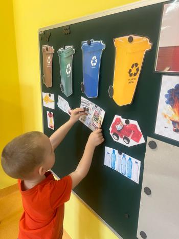 W ramach obchodów Dnia Ziemi, nasze najmłodsze przedszkolaki wzięły udział w zajęciach pt. „Kicia Kocia. Co z tymi śmieciami?”. Motylki wysłuchały bajki czytanej przez nauczyciela, uczyły się segregować śmieci oraz stworzyły wspólny plakat dotyczący dbaniu o planetę Ziemię