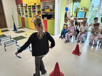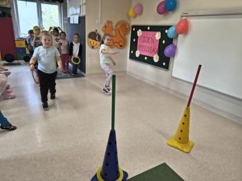 Dzień przedszkolaka w grupie ,,Pszczółek” przebiegł w miłej i sportowej atmosferze. Każdy mógł pochwalić się swoją sprawnością fizyczną, a nuta rywalizacji między chłopcami i dziewczynkami powodowała, że start w konkurencjach jeszcze bardziej mobilizował do szybkiego i sprawnego wykonania zadania.