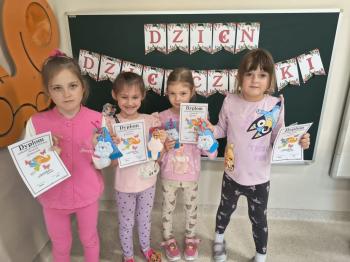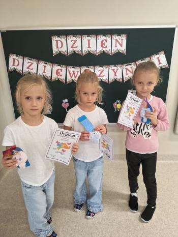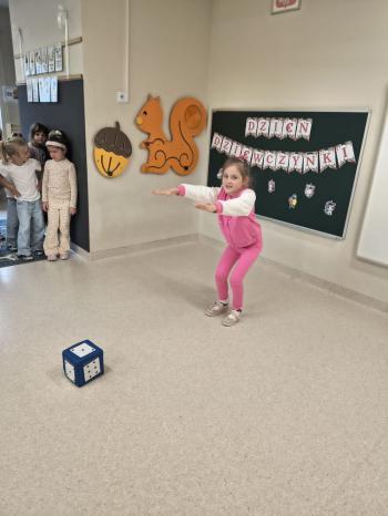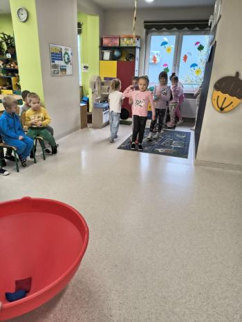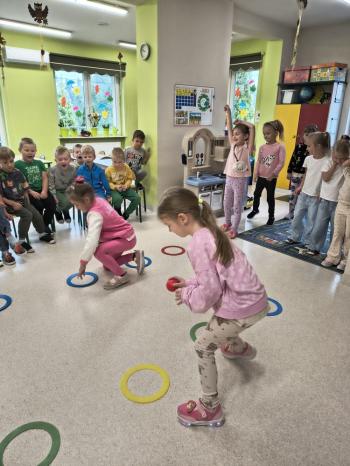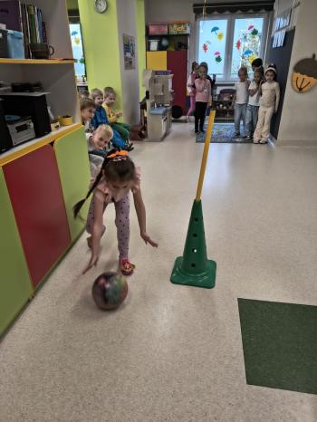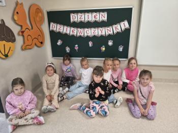 Dzień Dziewczynek w grupie ,,Pszczółek” przebiegał w sportowej atmosferze. Chłopcy z dumą spoglądali na koleżanki, które rywalizując między sobą wykazywały się zręcznością, zwinnością, szybkością oraz umiejętnością łapania piłeczki i rzucania woreczkiem. Doping ze strony chłopaków był bardzo głośny, co tylko zachęcało dziewczynki do jak najlepszego wykonania poszczególnych zadań. Humory wszystkim dopisywały, a zabawa dostarczyła