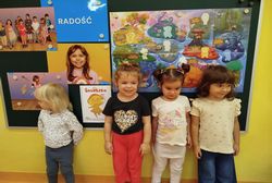 W tym roku szkolny w grupie Motylków będzie realizowana innowacja pedagogiczna pt. ,,Czuciaki z Krainy Emocji." W ubiegły piątek odbyły się pierwsze zajęcia, podczas których dzieci poznały Śmieszkę z Wyspy Radości, której misją jest rozweselanie wszystkich. Na początku zajęć rozmawialiśmy o tym co to jest radość, co nam sprawia radość, kiedy czujemy się radośni i czy jest to miła emocja. Wysłuchaliśmy również piosenki przewodniej, która będzie nam towarzyszyła podczas naszych podróży po Krainie Emocji. Następnie dzieci oglądały krótki film, którego bohaterem był mały chłopiec i oczywiście Śmieszka. Na podstawie filmu dzieci dowiedziały się jakie sytuacje mogą się zdarzyć w codziennym życiu właśnie z powodu radości. Wykonaliśmy również wspólną pracę - ,,Słoneczko," które zawsze wywołuje w nas radość i przyjemne odczucia. Na zakończnie zajęć przykleiliśmy postać Śmieszki na Wyspie Radości i tym sposobem zaliczyliśmy pierwszy etap naszej podróży po emocjach.