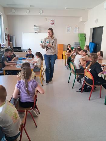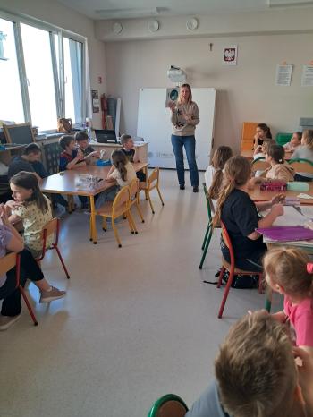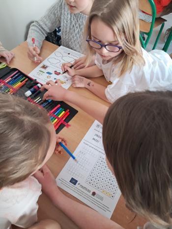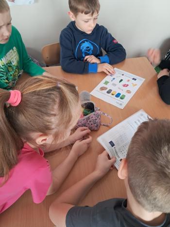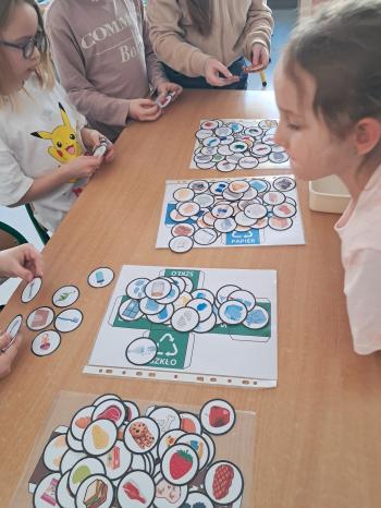 Dzieci zapoznały się z pojęciem „recyklingu”, a także rozmawiały o właściwej segregacji odpadów oraz ich przetwarzaniu czyli właśnie o recyklingu. Uczniowie uzupełniali karty pracy np.: ekologiczne wykreślanki, rozsypanki. Ponadto uczniowie w grupach wykonywali takie zadania jak np.: segregacja śmieci- łączyli odpady z odpowiednimi koszami, wyszukiwali sposoby uzdrowienia Ziemi z zalegających śmieci, a także wskazywali działania, które miały poprawić jakość i czystość Ziemi. Z wszystkich zadań uczniowie wywiązali się bardzo dobrze prezentując dużą wiedzę ekologiczną. Wspólnie wykonaliśmy szkolną gazetkę.