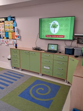 Dzieci na świetlicy również mogły poznać ogromne znaczenie drzew dla naszej planety. Oglądały filmik edukacyjny „Poznaj świat drzew”- zdobyły garść informacji o rodzajach drzew, ważności drzew na naszej planecie i w naszym codziennym życiu.