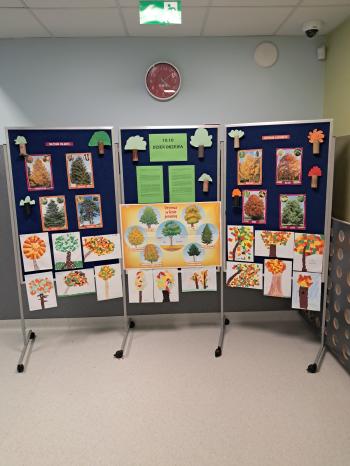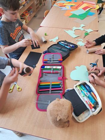 Czytały wiersze Moniki Miłkowskiej „Wierszyki o drzewach”, a także wykonały prace plastyczne „Drzewo” - z wykorzystaniem rolek papieru, papieru kolorowego czy tworzyły wydzieranki, które ozdobiły szkolną gazetkę.